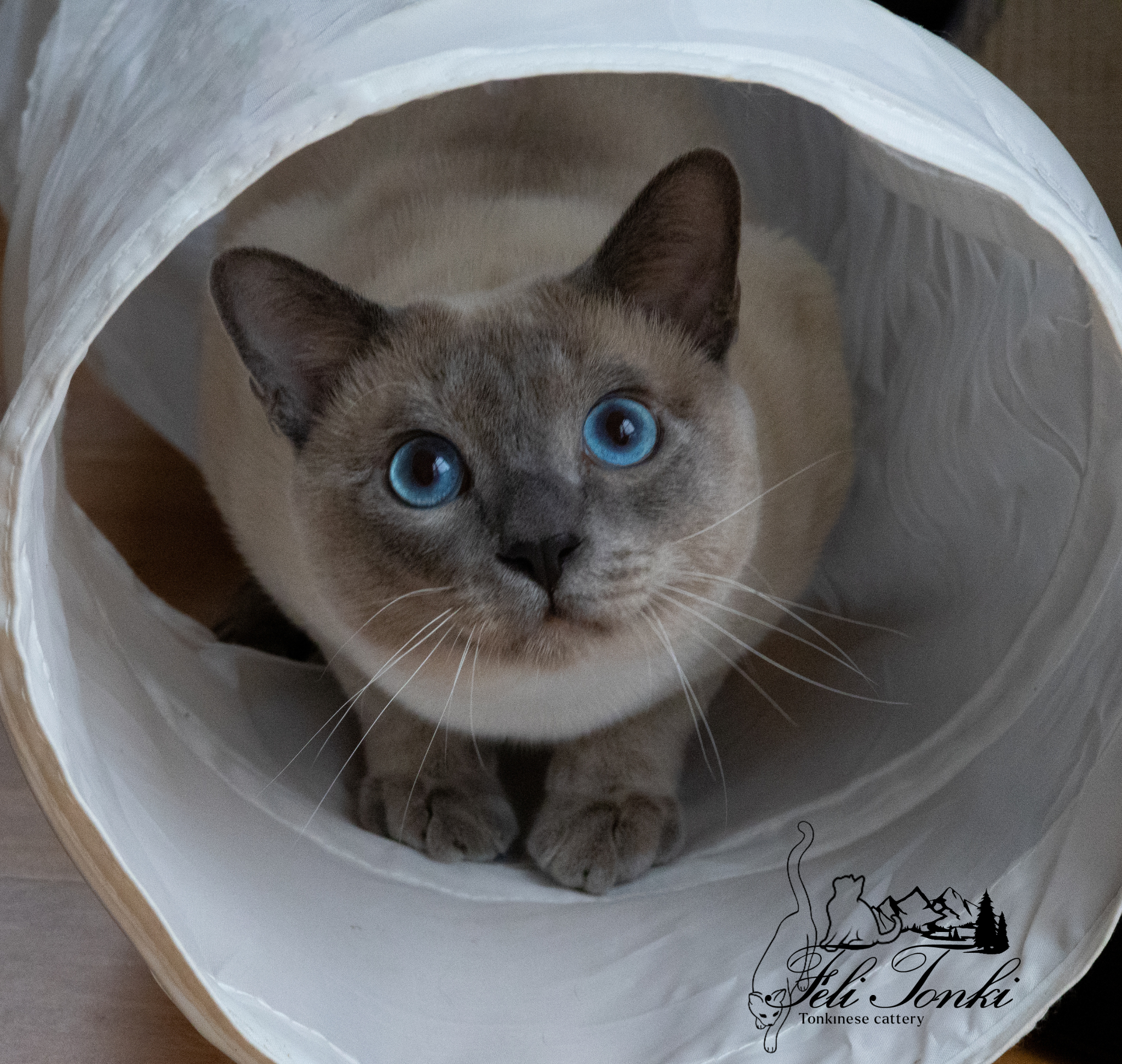 Victor Grey jako 4,5 miesięczny kociak przyleciał do nas z USA z Kalifornii. Urodził się w renomowanej hodowli Tonkville – hodowca Bonnie Brooks. Kot o wspaniałym charakterze, spokojny, bardzo lubi się przytulać i przesiadywać na kolanach.